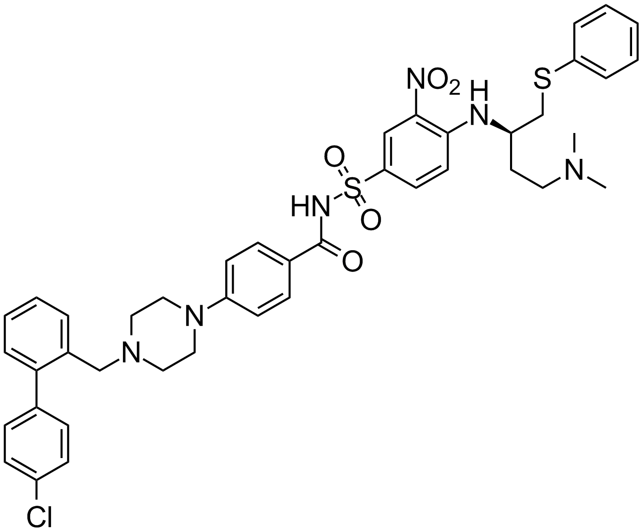 | Chemical Name | 4-[4-[[2-(4-chlorophenyl)phenyl]methyl]piperazin-1-yl]-N-[4-[[(2R)-4-(dimethylamino)-1-phenylsulfanylbutan-2-yl]amino]-3-nitrophenyl]sulfonylbenzamide |