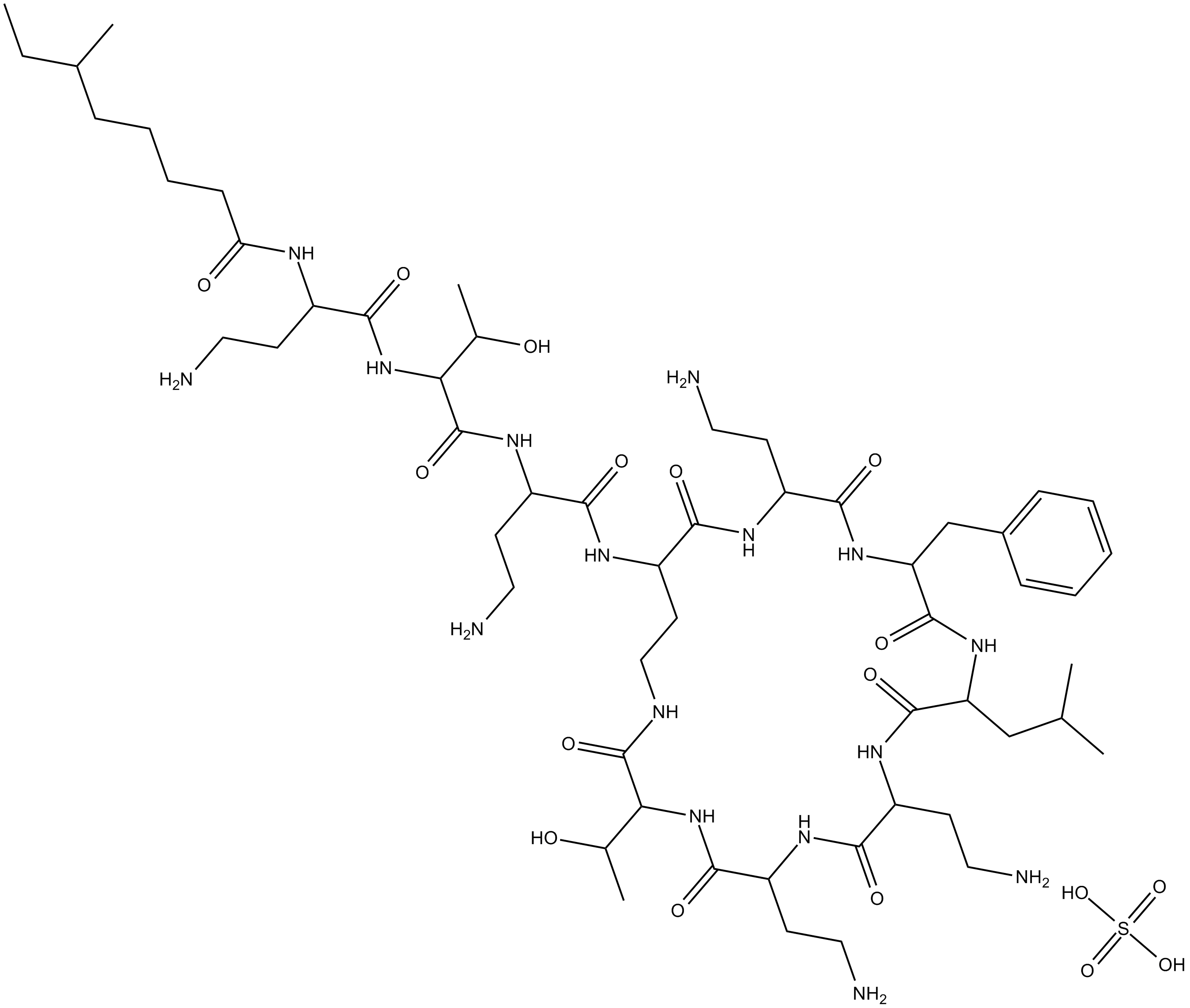 | Chemical Name | N-(4-amino-1-((1-((4-amino-1-oxo-1-((6,9,18-tris(2-aminoethyl)-15-benzyl-3-(1-hydroxyethyl)-12-isobutyl-2,5,8,11,14,17,20-heptaoxo-1,4,7,10,13,16,19-heptaazacyclotricosan-21-yl)amino)butan-2-yl)amino)-3-hydroxy-1-oxobutan-2-yl)amino)-1-oxobutan-2 |