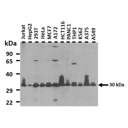 | Predicted Homology Based on Immunogen Sequence | Cow: 83%; Dog: 93%; Goat: 83%; Horse: 75%; Human: 100%; Pig: 86%; Sheep: 92% |