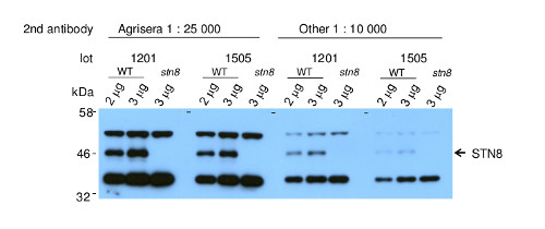 Additional information: An extract from STN8 mutant needs to be used in pararel to determine specific band of STN8 protein on a western blot