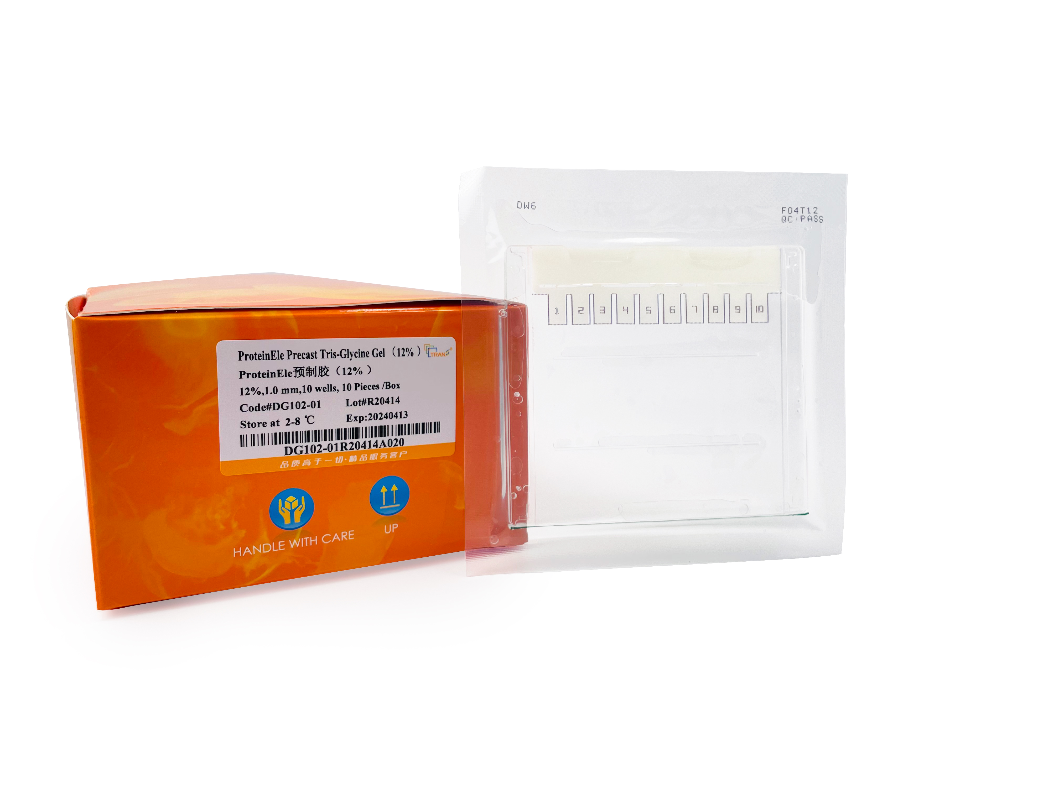 ProteinEle® Precast Tris-Glycine Gel is a 12% uniform concentration polyacrylamide precast gel formulated with a neutral pH buffer system, showing high resolution and good stability. Using Tris-glycine buffer, this product is suitable for separation of native and denatured proteins. It is easy to use and simple to install, and fits mini gel tanks which are popular and widely used.