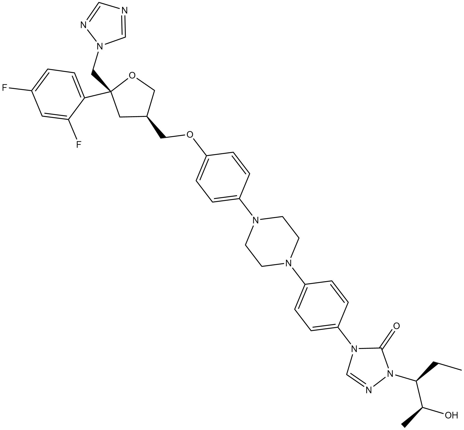 | Chemical Name | 4-(4-(4-(4-(((3R,5R)-5-((1H-1,2,4-triazol-1-yl)methyl)-5-(2,4-difluorophenyl)tetrahydrofuran-3-yl)methoxy)phenyl)piperazin-1-yl)phenyl)-2-((2S,3S)-2-hydroxypentan-3-yl)-2,4-dihydro-3H-1,2,4-triazol-3-one |