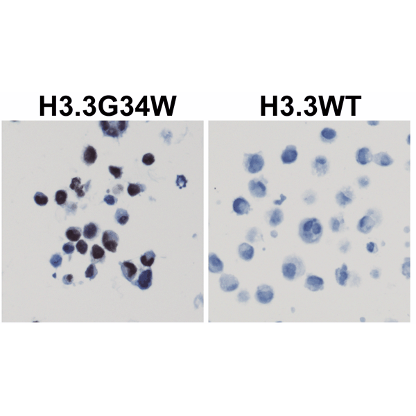 Cet anticorps reconnait exclusivement la forme mutée G34W de l'histone H3.3 et non la forme native.