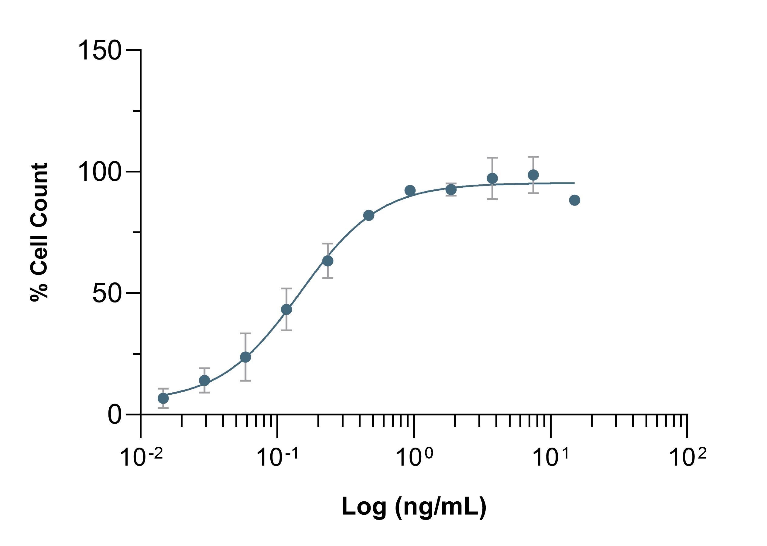 Interferon gamma (IFN-γ) is a type II interferon that is critical during adaptive and innate immune responses to infection. IFN-γ is produced by T cells and natural killer cells following antigen-specific activation. IFN-γ binds IFN-γ receptors (IFN-γ R1 and IFN-γ R2), which are expressed on most immune cells, to activate the JAK-STAT pathway. IFN-γ-induced signaling increases the expression of class 1 major histocompatibility complex (MHC) molecules. Human IFN-γ is not cross-reactive with mouse IFN-γ.